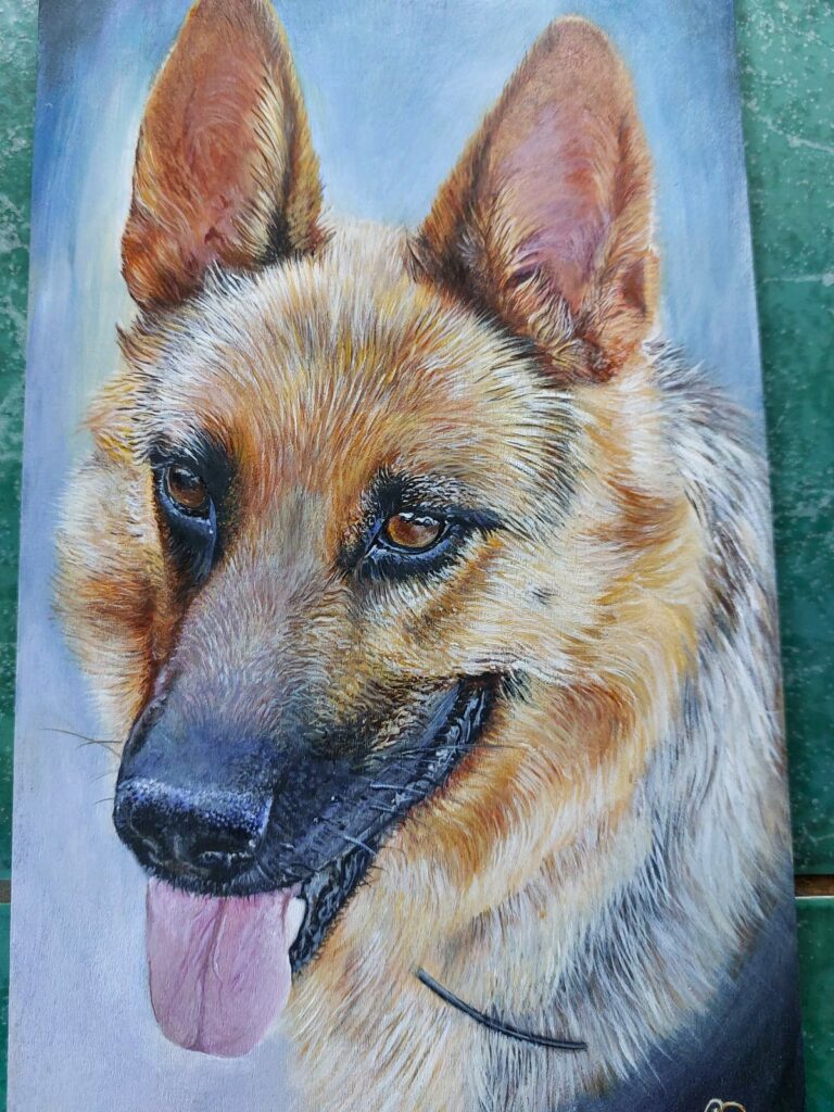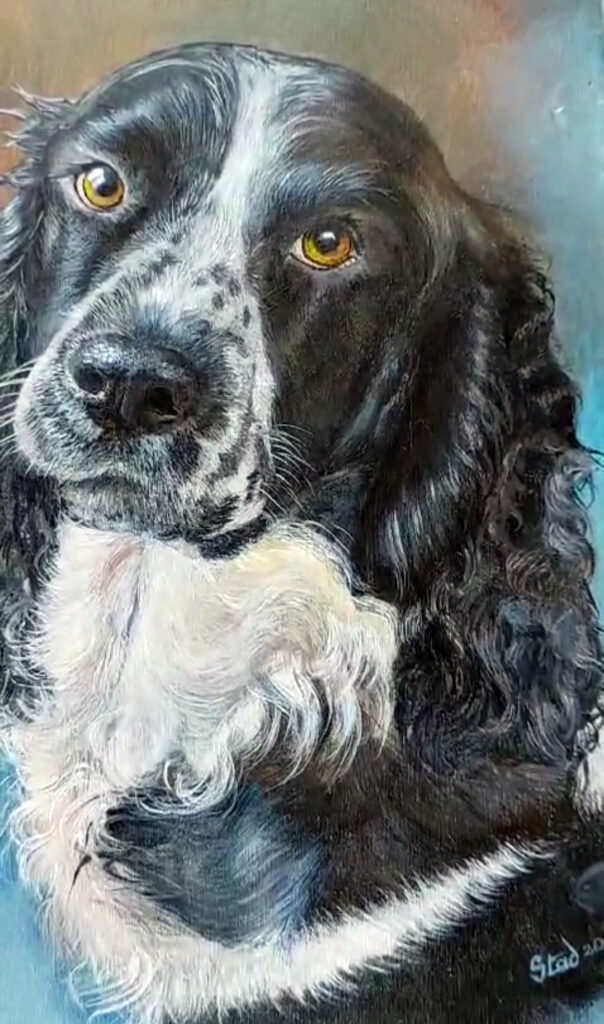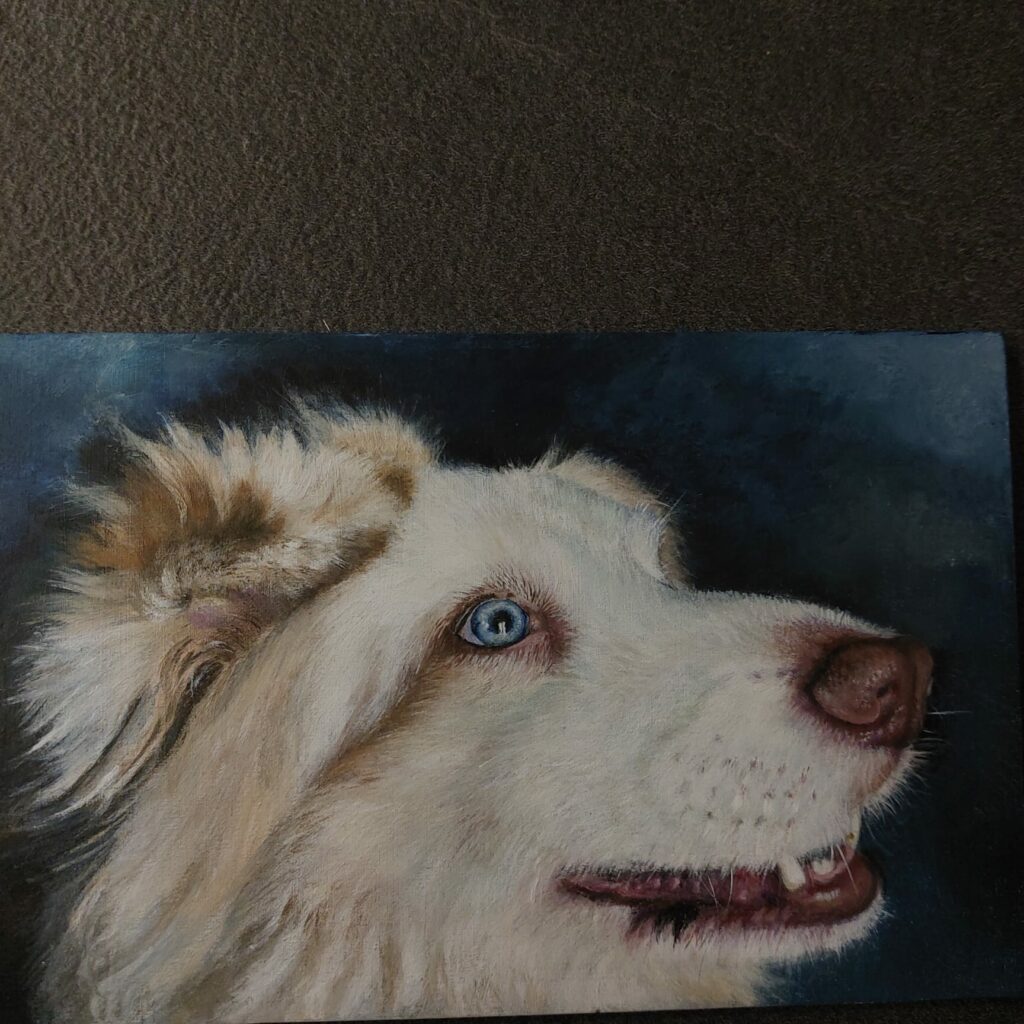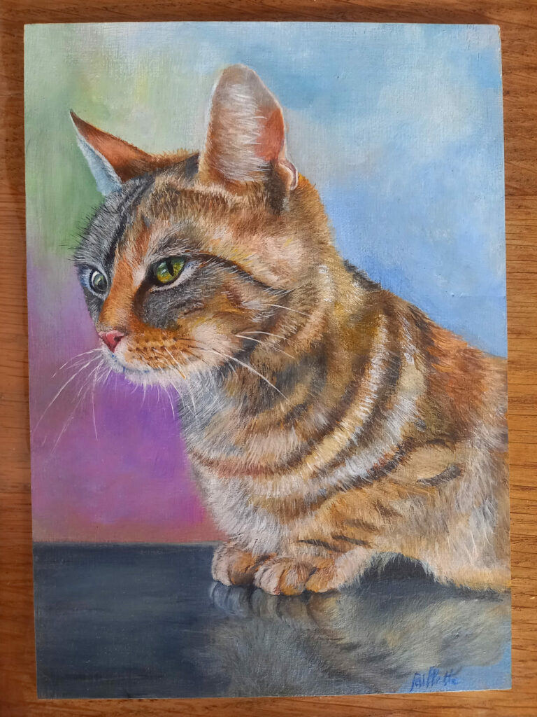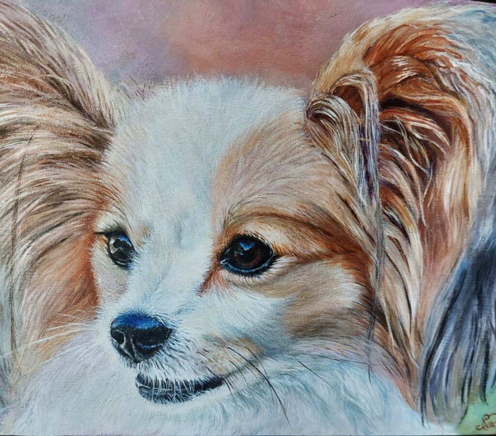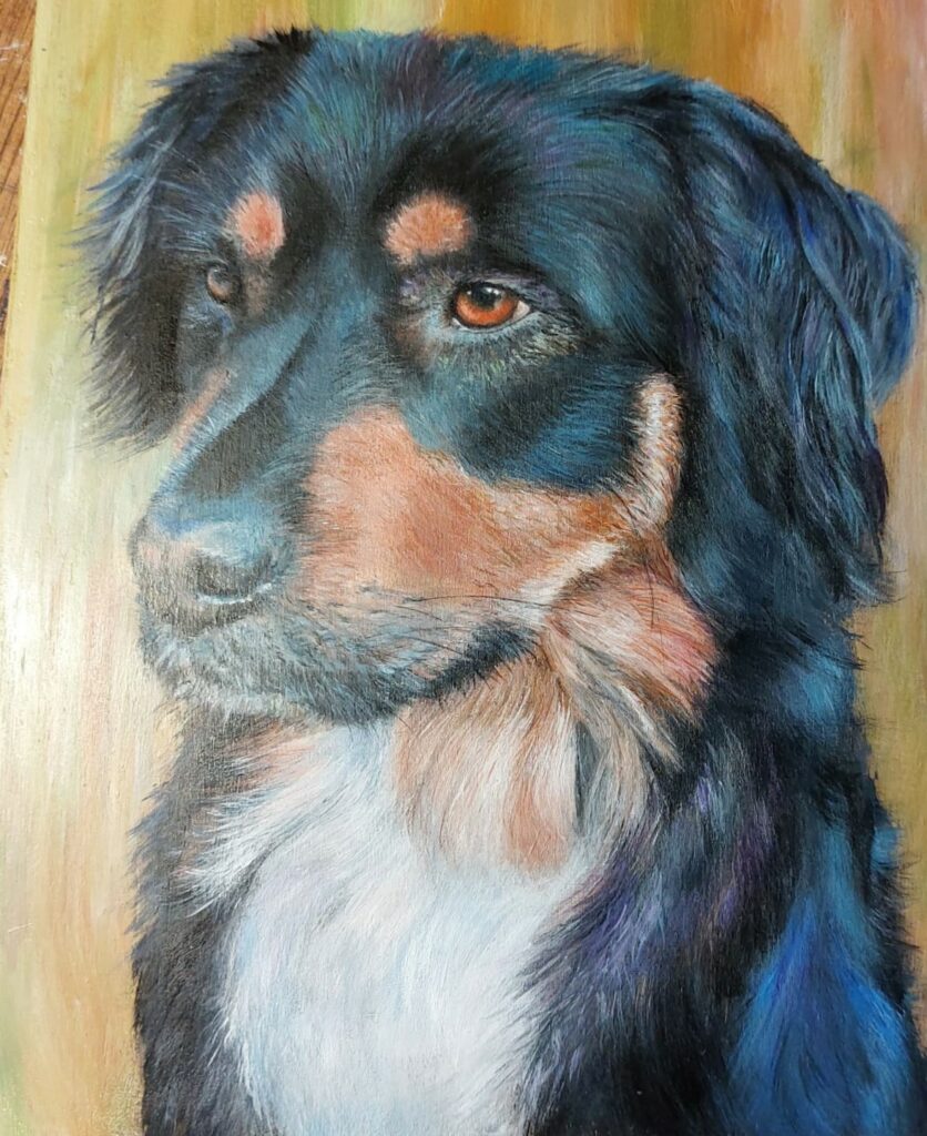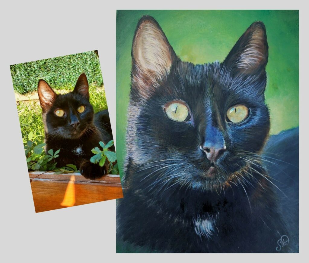 Nadia réalise des portraits de chiens et de chats à partir de photos fournies par les propriétaires des animaux.
